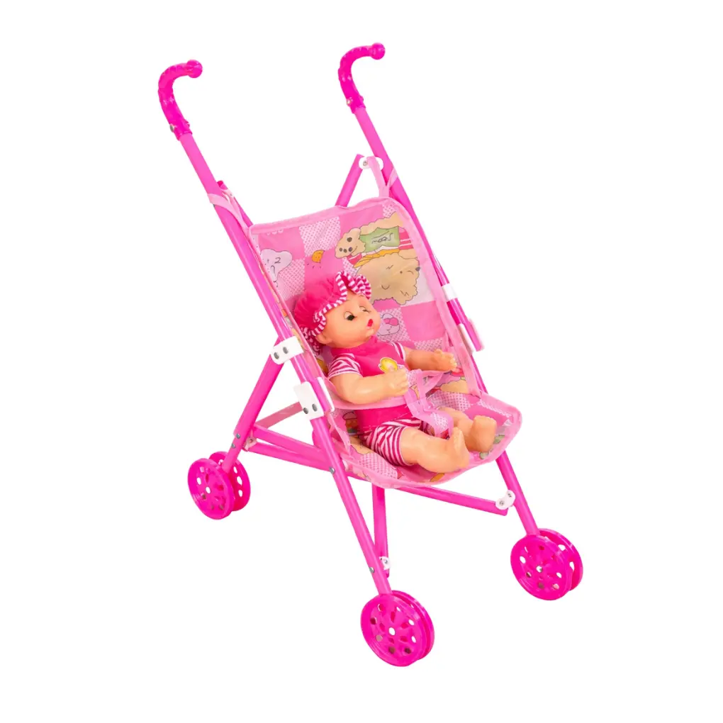 Make playtime extra sweet with this adorable pink doll stroller, perfectly sized for little hands and big imaginations. Featuring a lightweight frame, smooth-rolling wheels, and a cheerful fabric seat with playful patterns, this stroller is ideal for nurturing pretend play at home or on the go.
