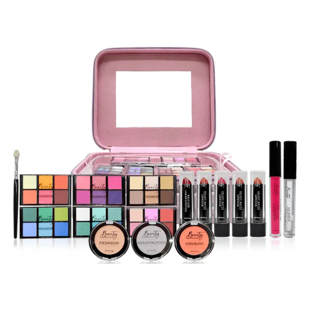 Beauty Buddy Luxury Makeup Kit! Housed in a chic dusty pink faux-leather case, this all-in-one kit is perfect for creating stunning looks or gifting to someone special.